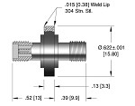 Specifications:• Materials.. Housing: 304 Stainless steel.. Pin: Inconel X - 750.. Insulation: Glass-ceramic.. Magnetic Materials: No.. Contacts: 300 Series Stn. Stl.• Voltage Rating 500 V DC• Current Rating 1 Amp• Temperature Range.. -269 º C to 350 º C, ISO KF -25 º C to 205 º C• Pressure @ 20ºC.. 1400 PSIG (97 Bar), ISO KF 0 PSIG• Leak Rate <1x10-10 mbar L/s (He)